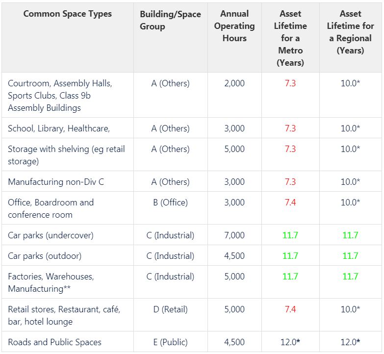 - The table below shows how the asset lifetime values have been manipulated to stimulate growth in underserved areas. A discount rate has been applied to most metro installs to promote more regional installs. While car parks and certain types of factories have been bumped up to stimulate more installs in metro and regional areas.