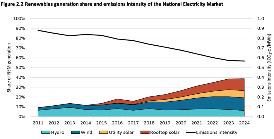 Renewable energy provided roughly 39% of Australia’s electricity in 2023 (up from just 17% in 2017). But in 2024 this momentum has stalled as electricity demand continues to climb. Simply put, the pace of renewable deployment is not yet on track to hit our targets, despite a strong investor appetite.