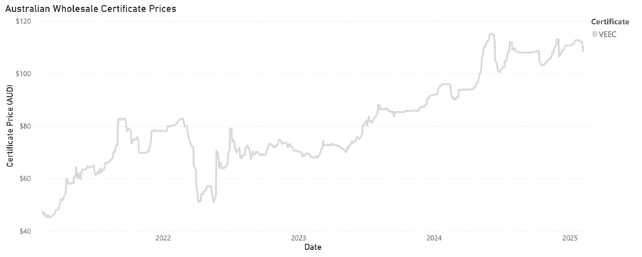 The VEECVictorian Energy Efficiency Certificate market has hit record highs, trading near $110 per certificate, with demand outpacing supply. Businesses relying on the Victorian Energy Upgrades (VEUVictorian Energy Upgrades is a Victorian government energy efficiency program that gives every Victorian household and business the opportunity to receive rebates or discounts on energy saving products.) program are asking: Will prices hold, climb even higher, or drop?