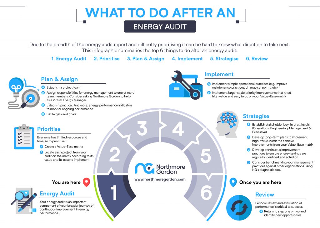 To make it easier we’ve set out the pathway you can follow after an energy audit to capitalise on the opportunity to reduce energy costs:
